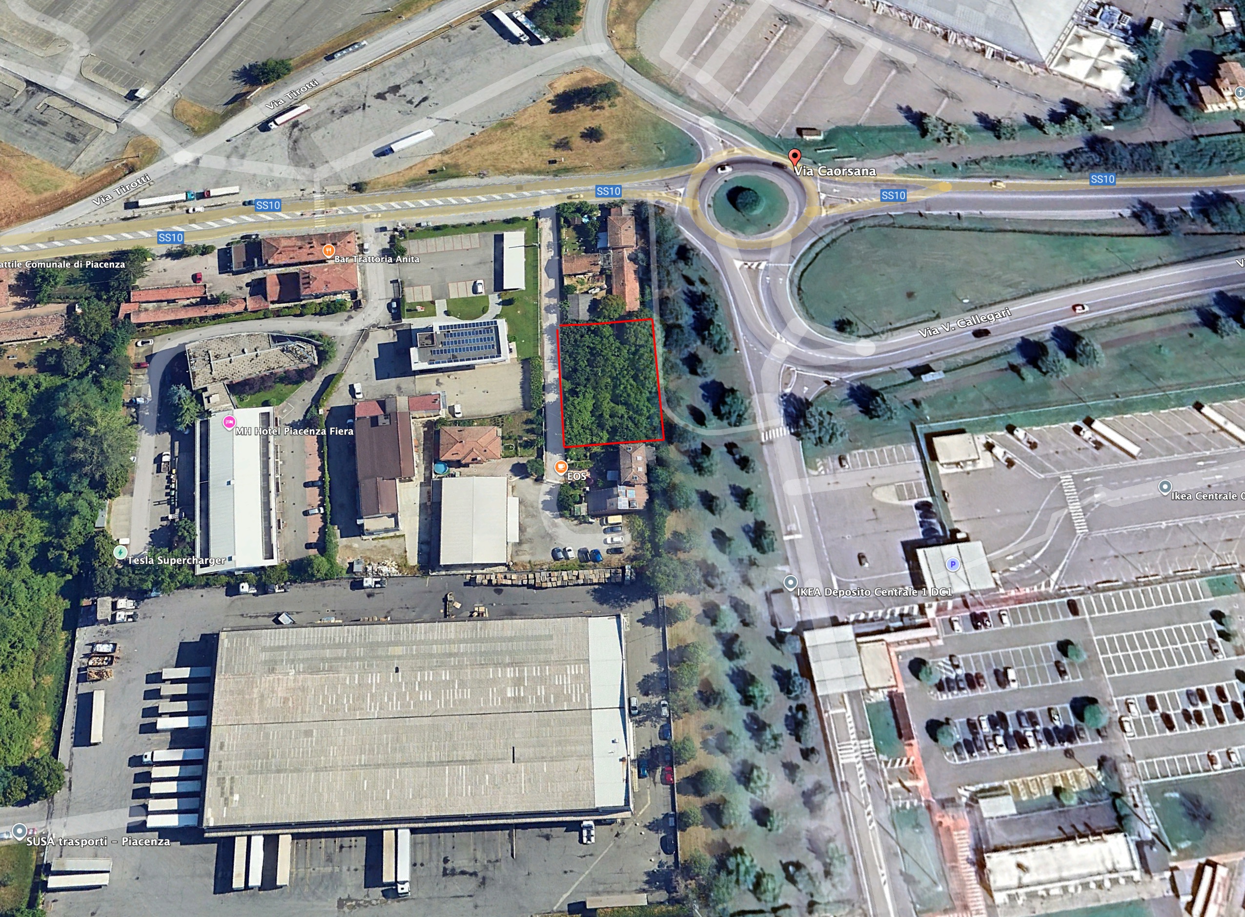 Piacenza – Strada Caorsana in zona fiera – vendesi lotto di terreno di 1.000 mq circa con indice di costruzione che rende possibile la costruzione di un capannone o di una palazzina uffici con superfice coperta di 400-500 mq circa.